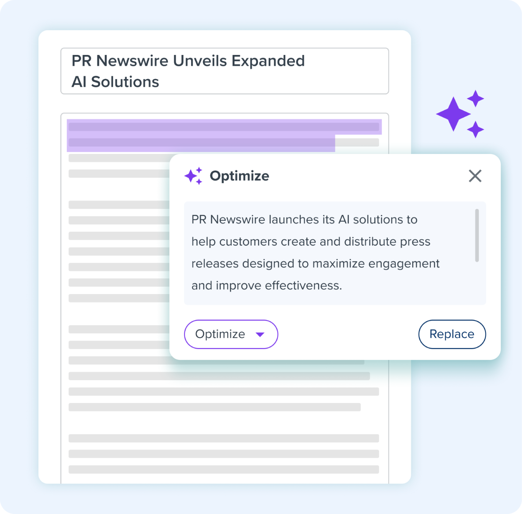 PR Newswire AI is a powerful suite of generative AI tools integrated into the Amplify platform. Built specifically for communications professionals, it streamlines the entire PR workflow, from campaign planning and content creation to distribution of press releases. By combining third-party technology (Google Gemini Enterprise) with proprietary models trained on years of press release performance data and editorial best practices, our AI helps brands quickly and easily craft high-quality, results-driven content that effectively tells your brand’s story.