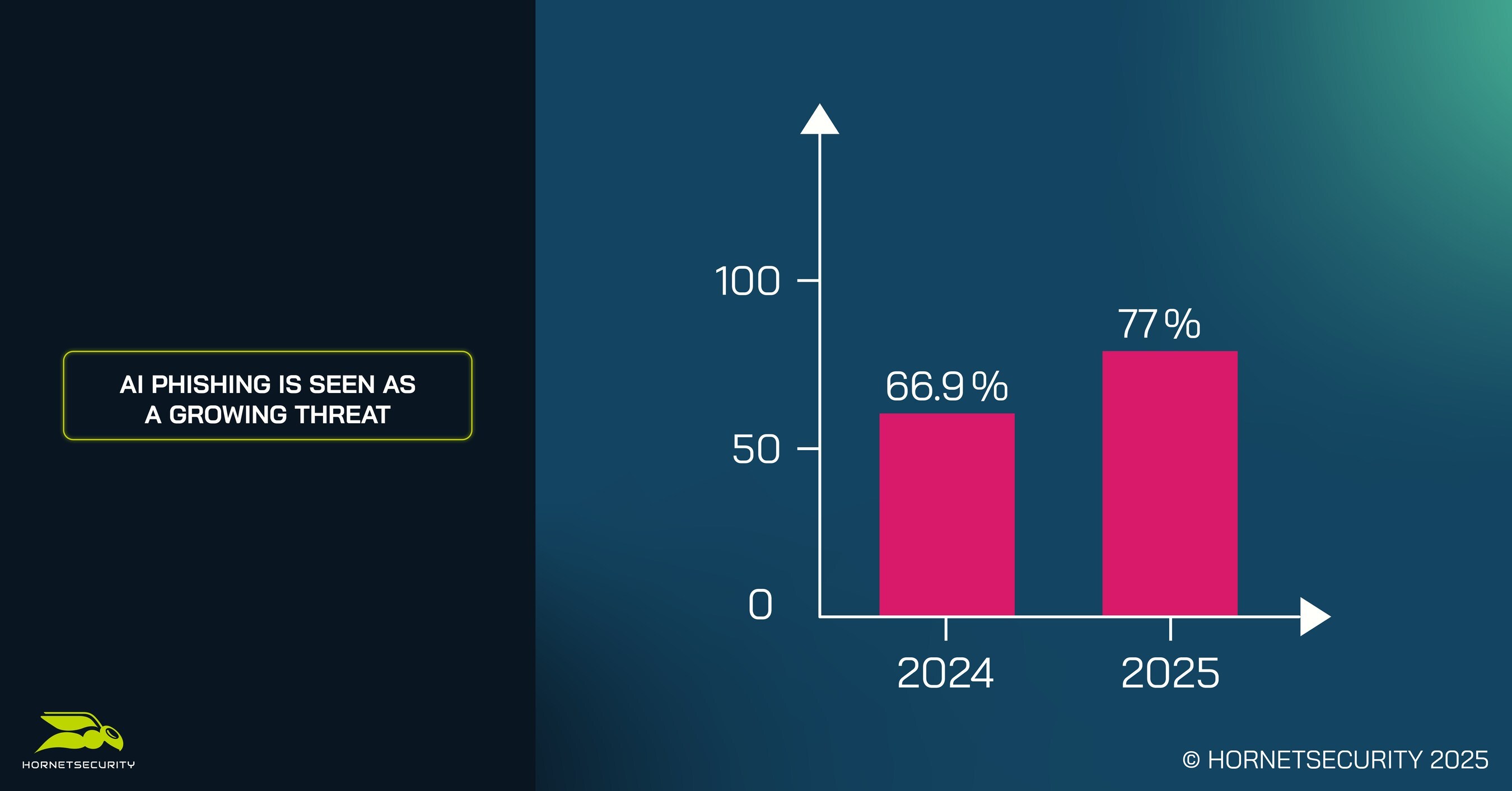 Results gathered from a global quantitative survey of 386 IT professionals, conducted by Hornetsecurity in August 2025.