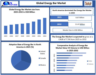 PUNE, India, Feb. 12, 2026 /PRNewswire/ -- Global Energy Bar Market size 2025–2032 continues to expand as consumers increasingly adopt healthy on-the-go snack options and functional nutrition. The global Energy Bar Market was valued at USD 6.67 billion in 2025 and is projected to reach USD 11.07 billion by 2032, growing at a CAGR of 7.5% during the forecast period. Rising awareness of fitness, active lifestyles, and demand for high-protein low-sugar energy bars is driving category expansion worldwide.